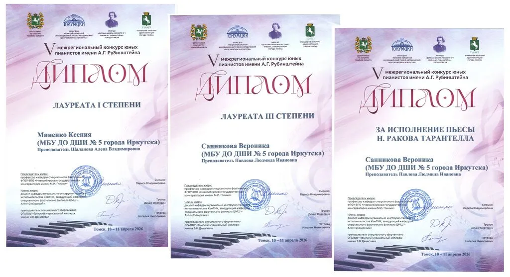 Поздравляем победителей V Межрегионального конкурса юных пианистов имени А. Г. Рубинштейна в городе Томске