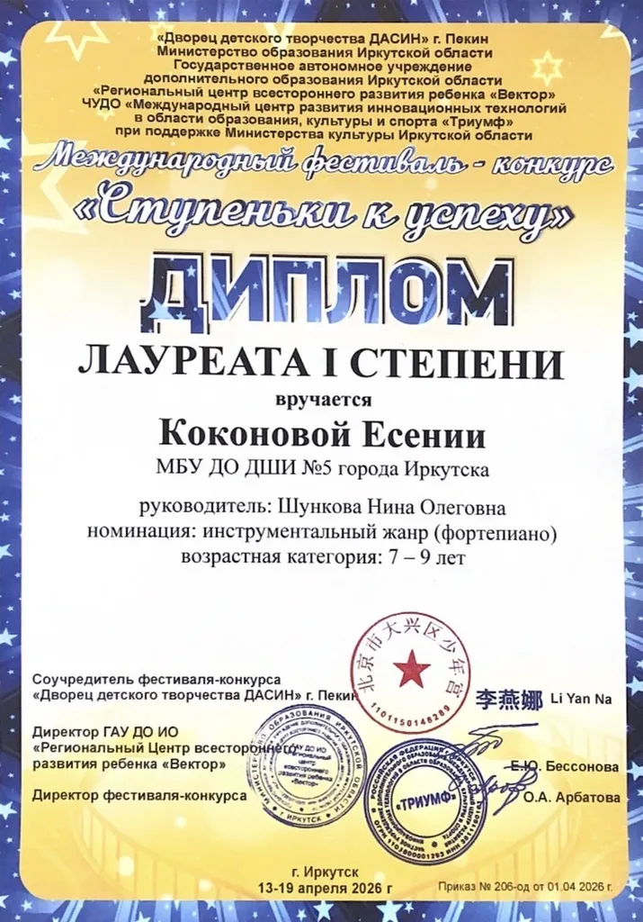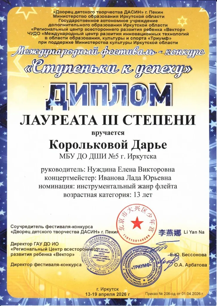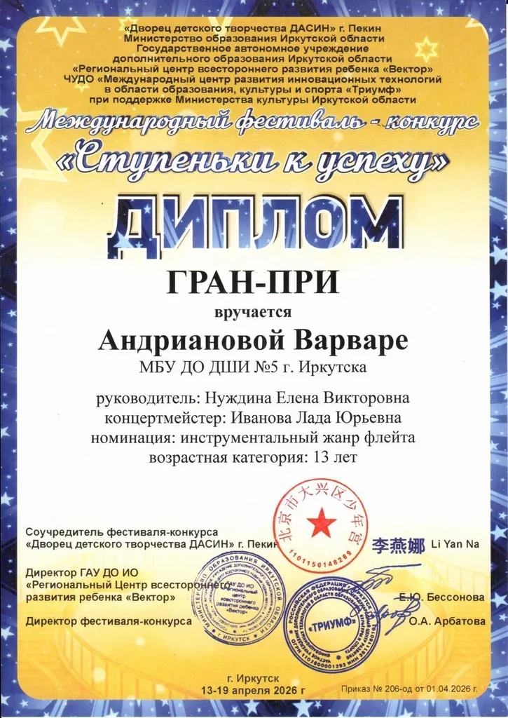13-19 апреля 2026 года прошел Международный фестиваль-конкурс «СТУПЕНЬКИ К УСПЕХУ». Это многожанровое творческое состязание собрало талантливых участников со всех уголков региона.